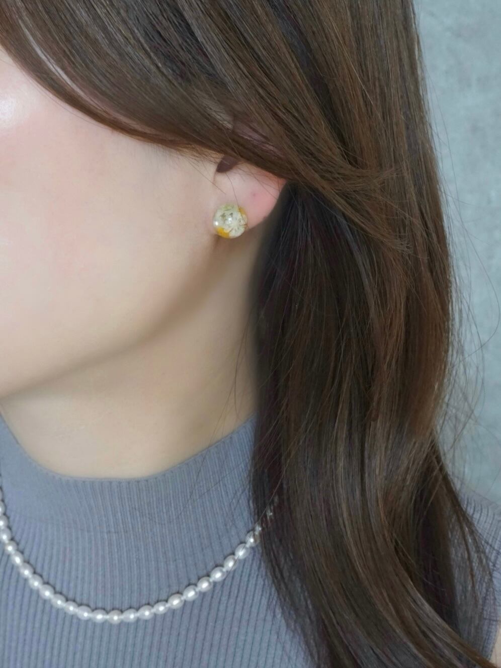 ミモザとカスミソウの花言葉である"感謝"という思いをアクセサリーに込めました。