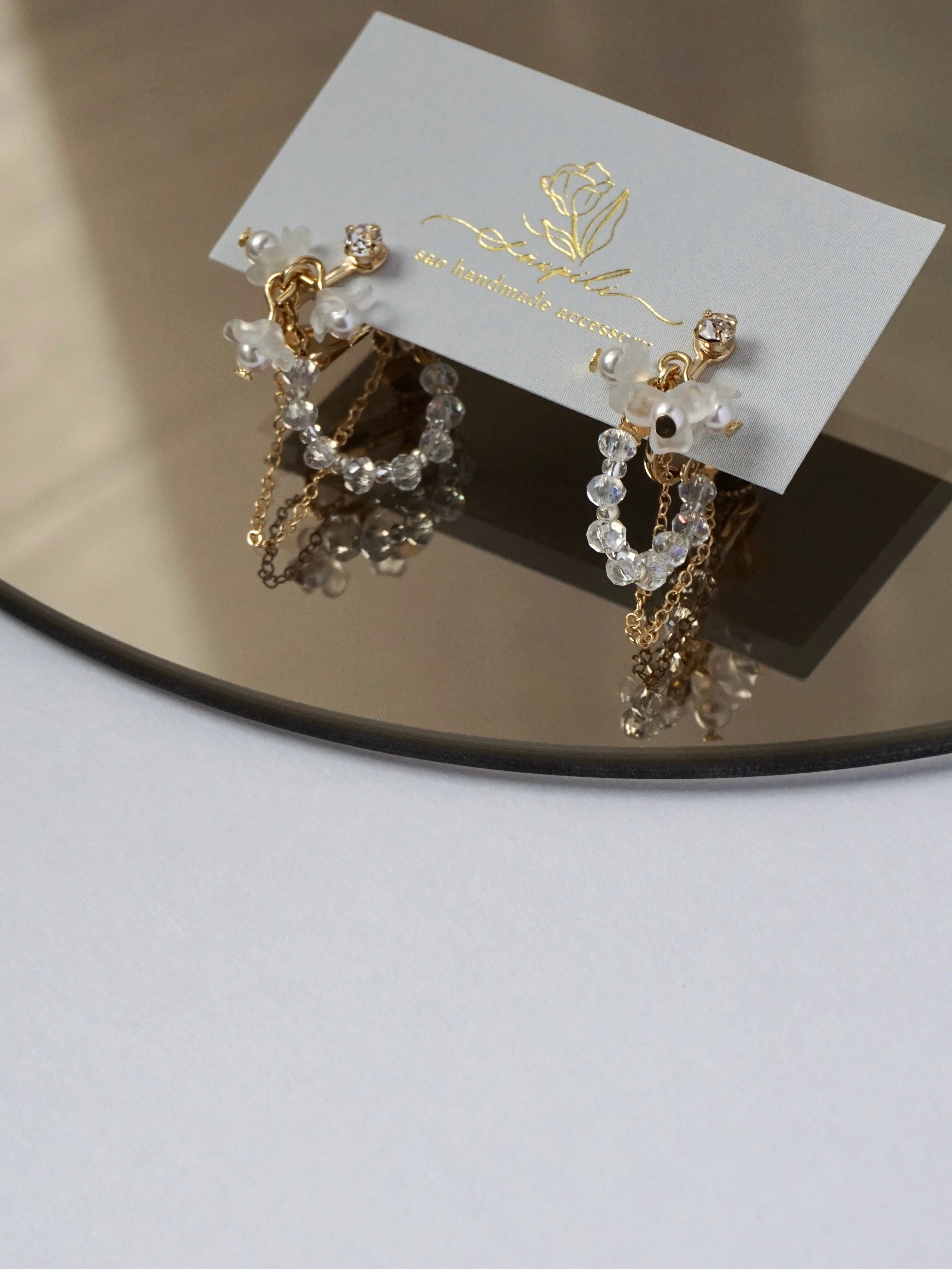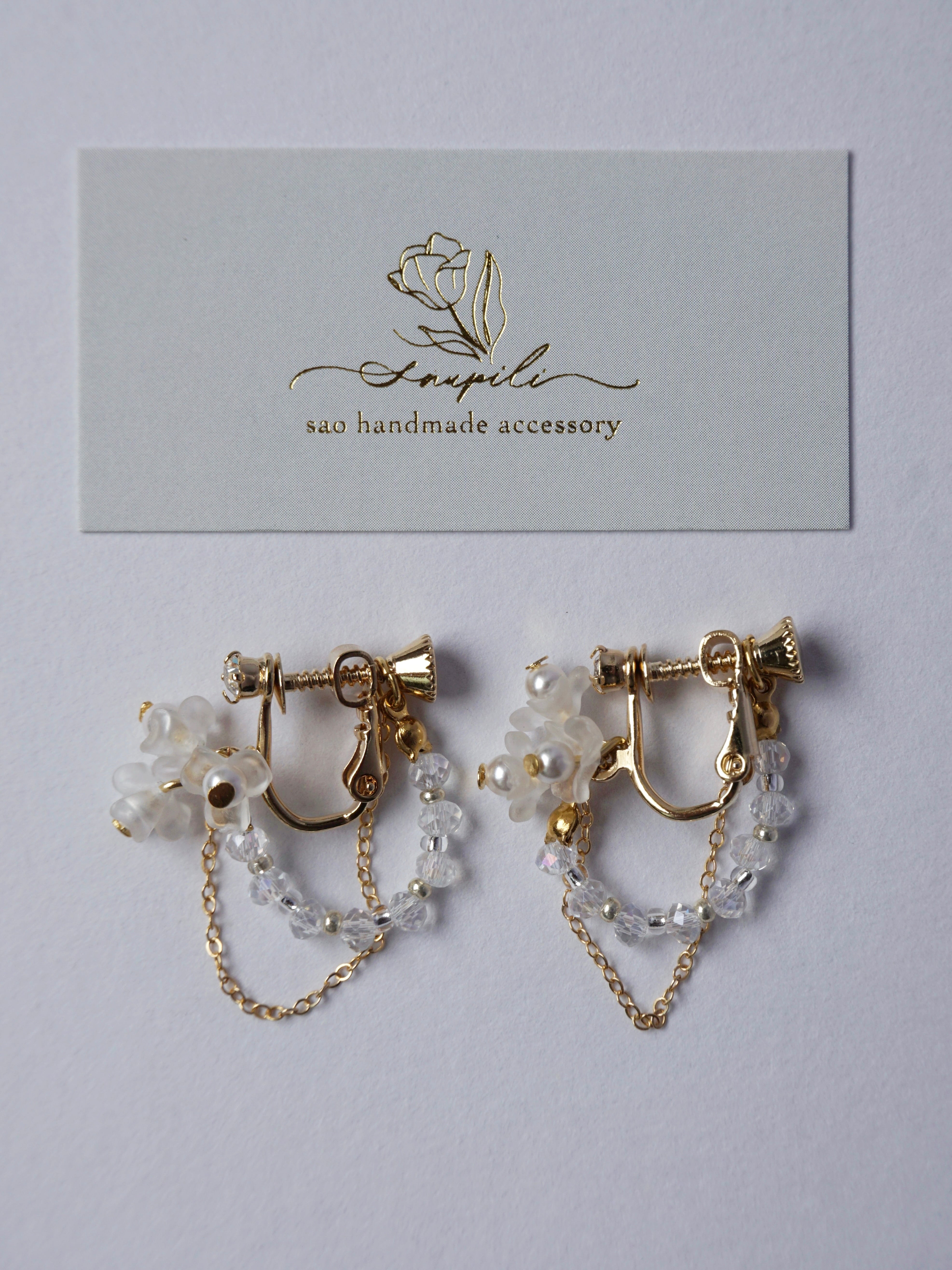 華奢で上品なビーズと、14kgfのチェーンが揺れる繊細なイヤーアクセサリー。
