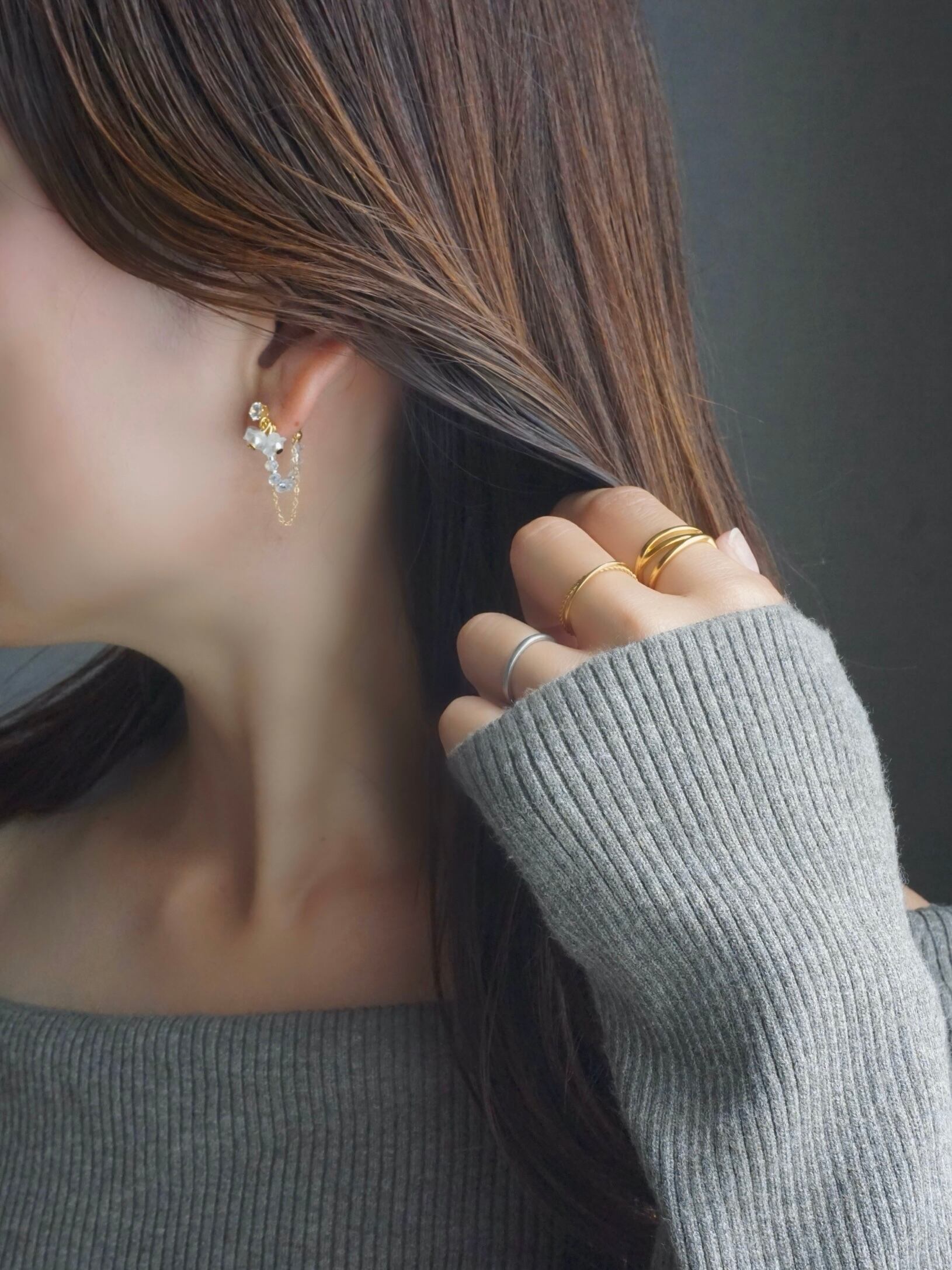 (ピアスはゴールド、リングはシルバーなど)