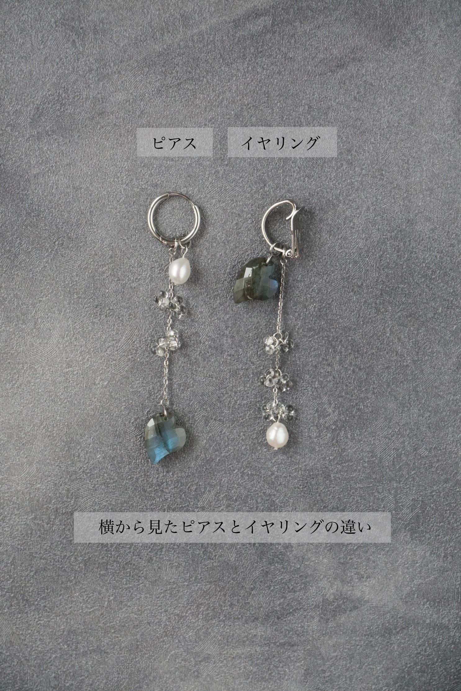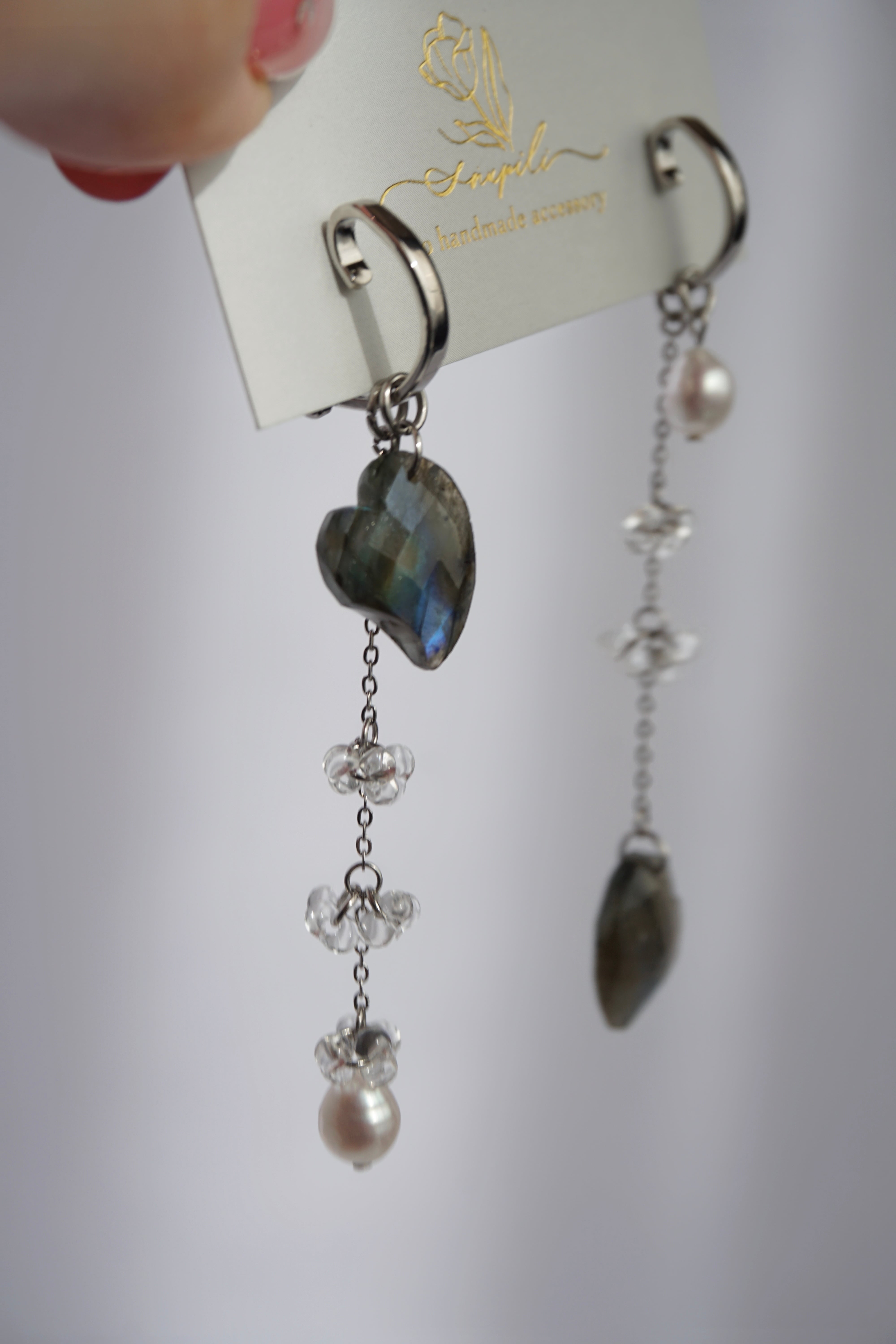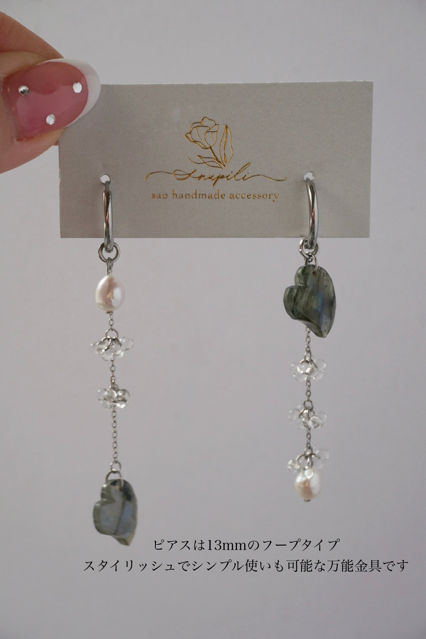 天然石ラブラドライト、淡水パール、サージカルステンレス、ガラスビーズ