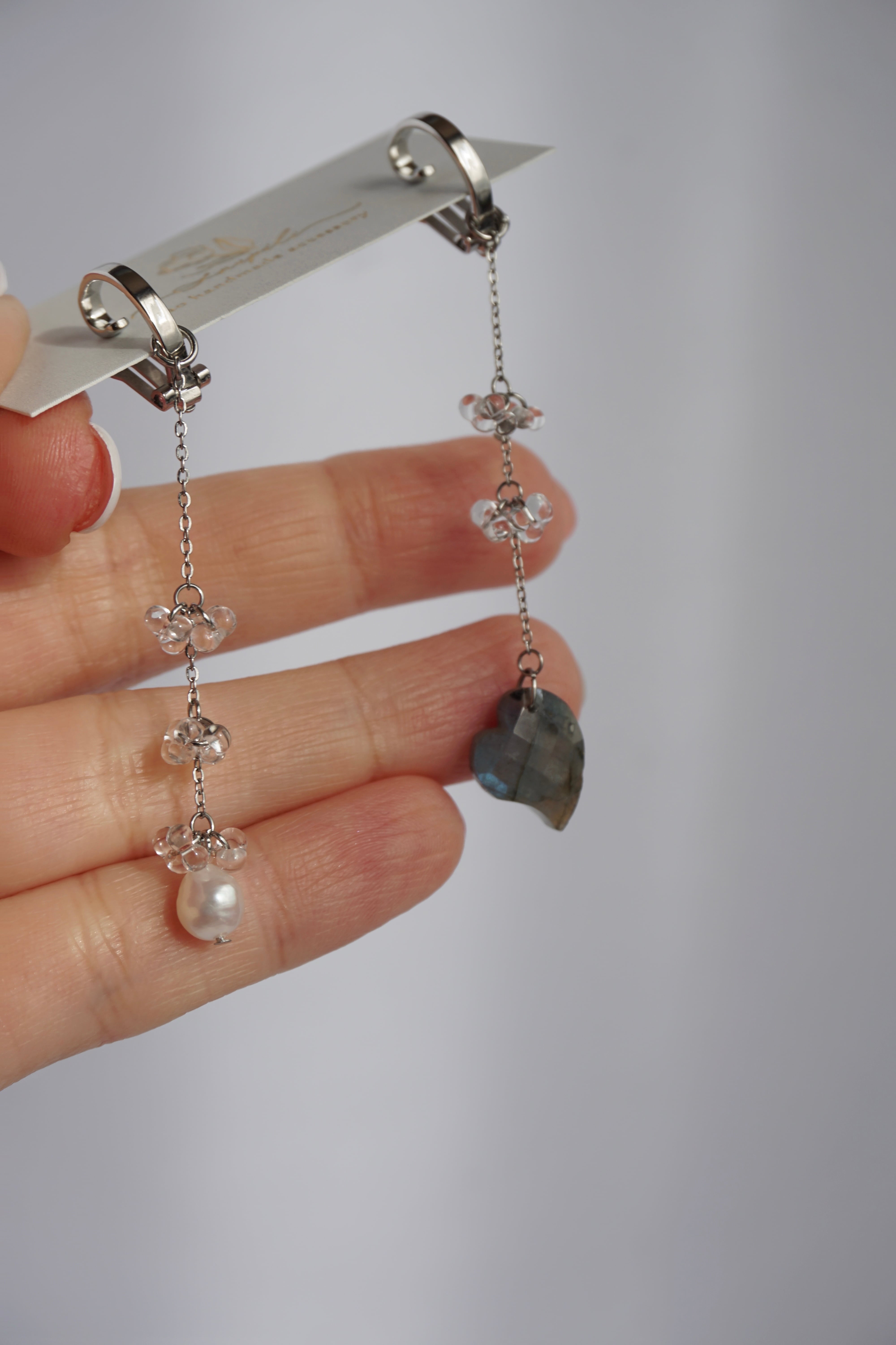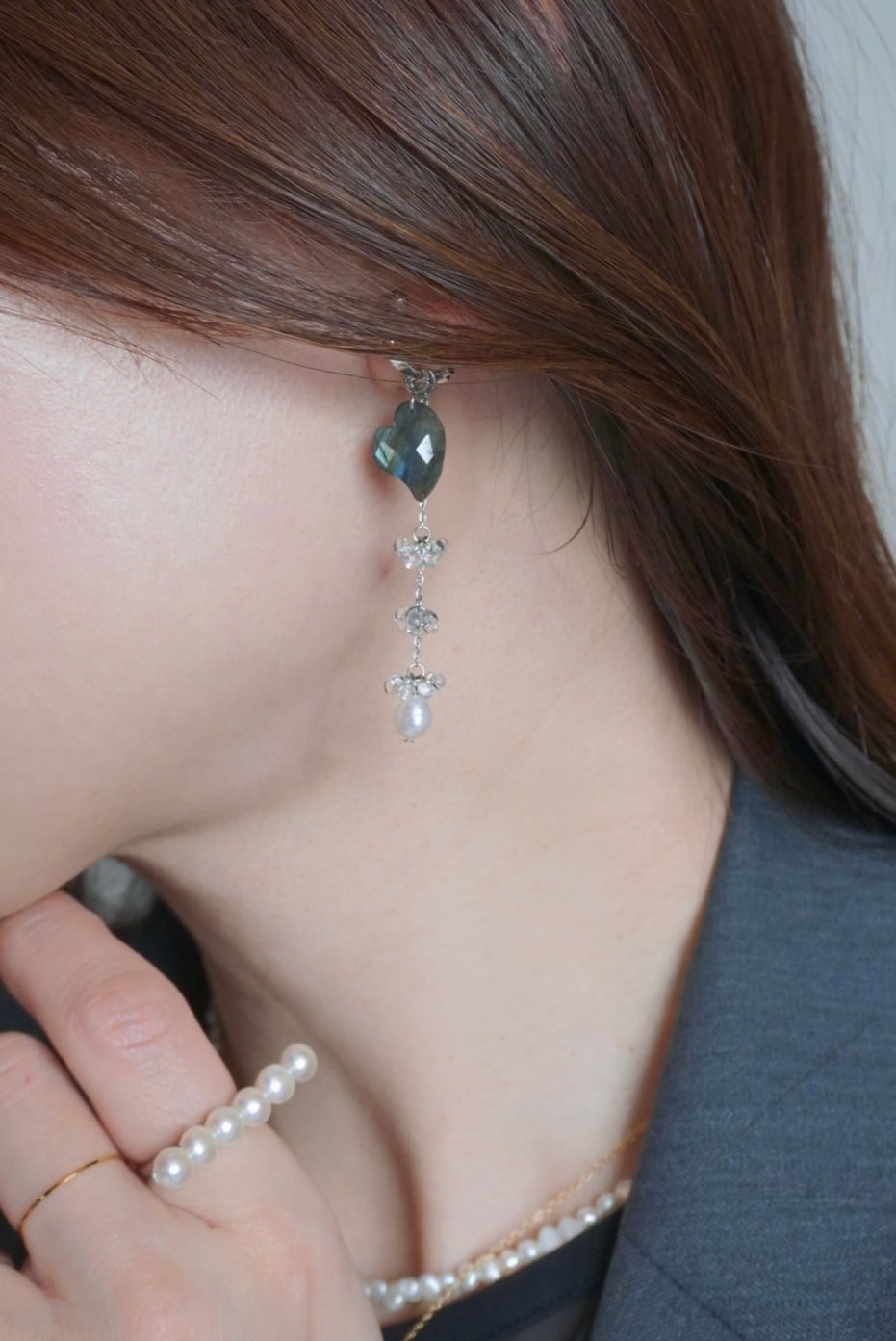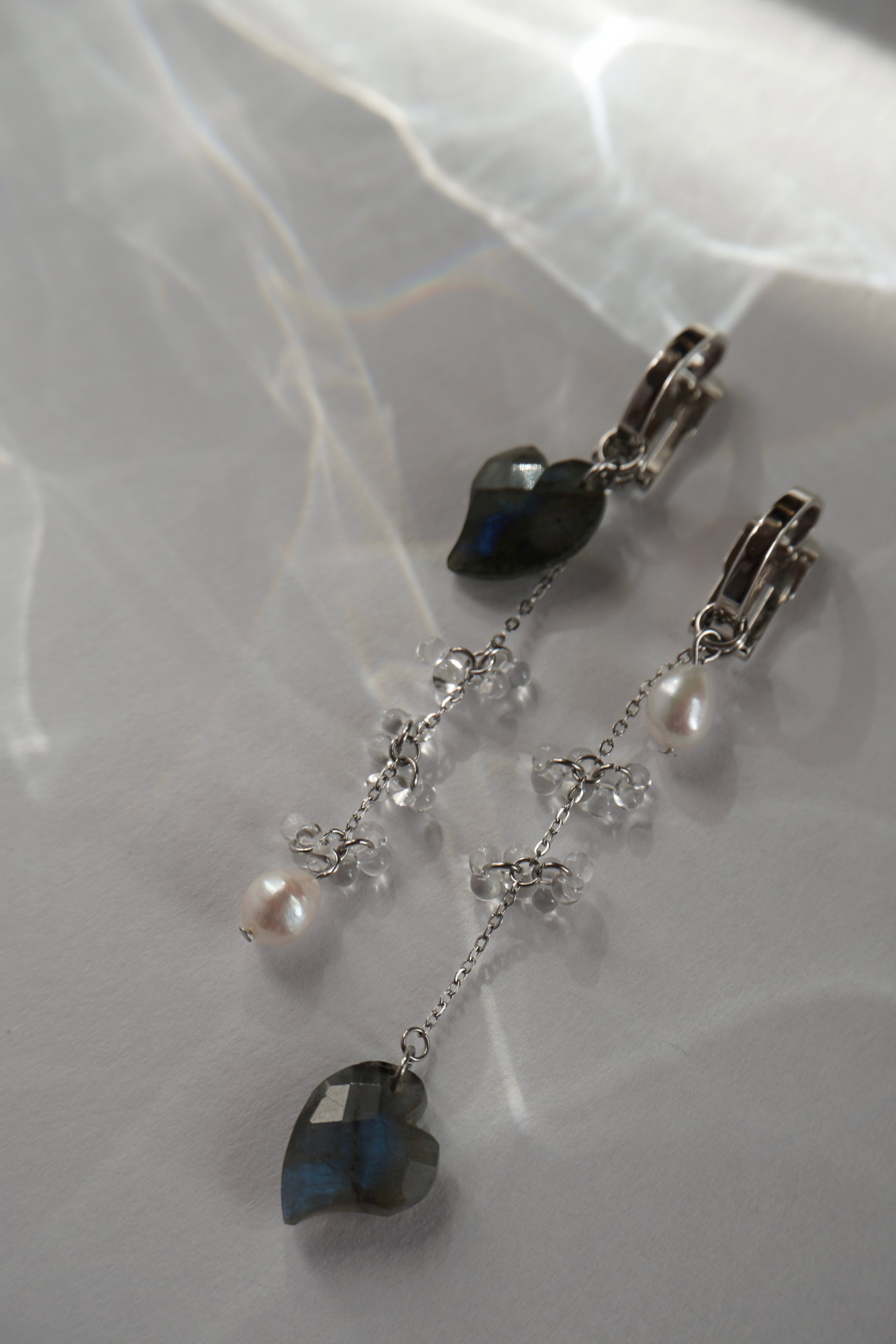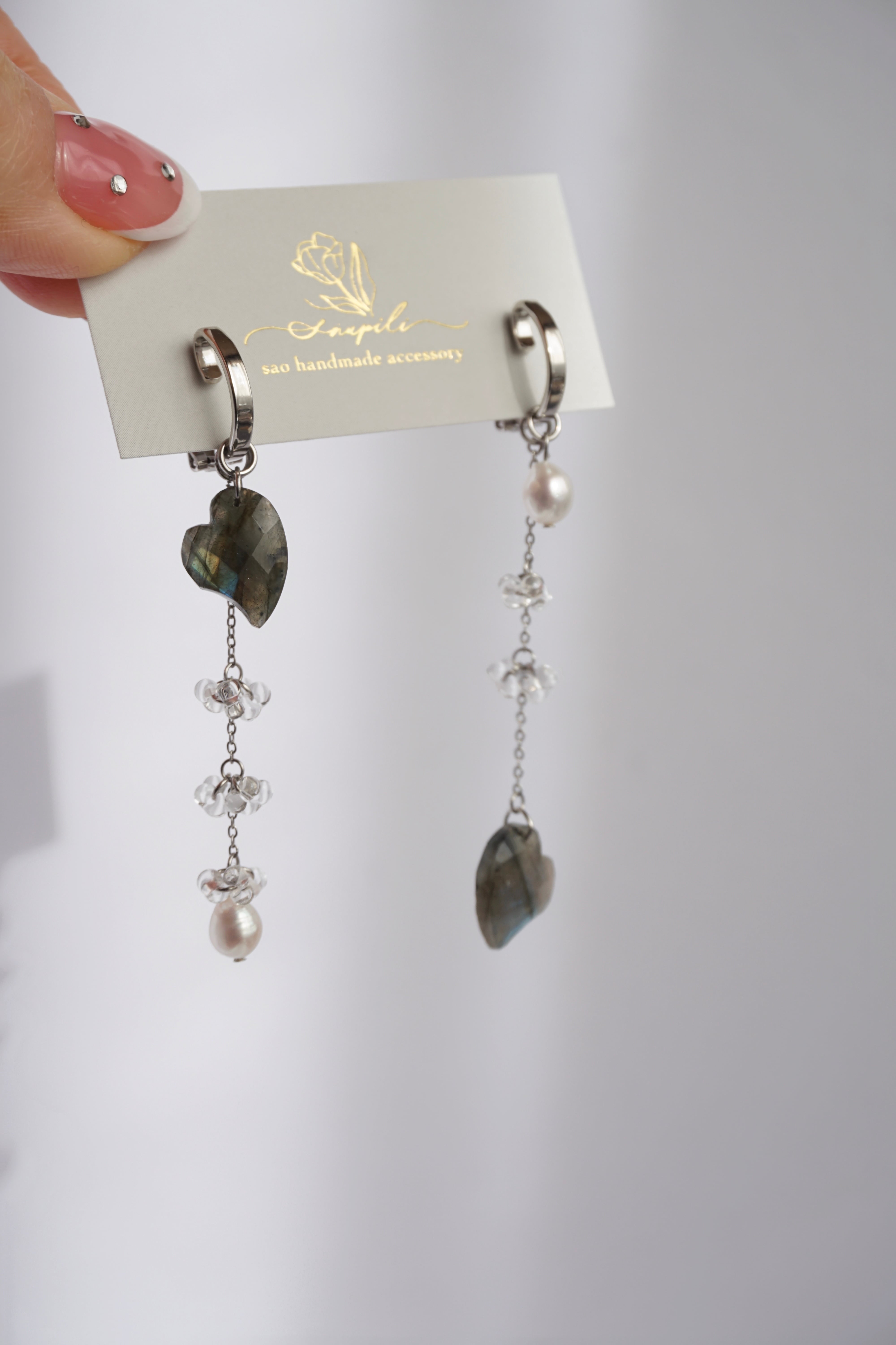 天然石ラブラドライト、淡水パール、サージカルステンレス、ガラスビーズ
