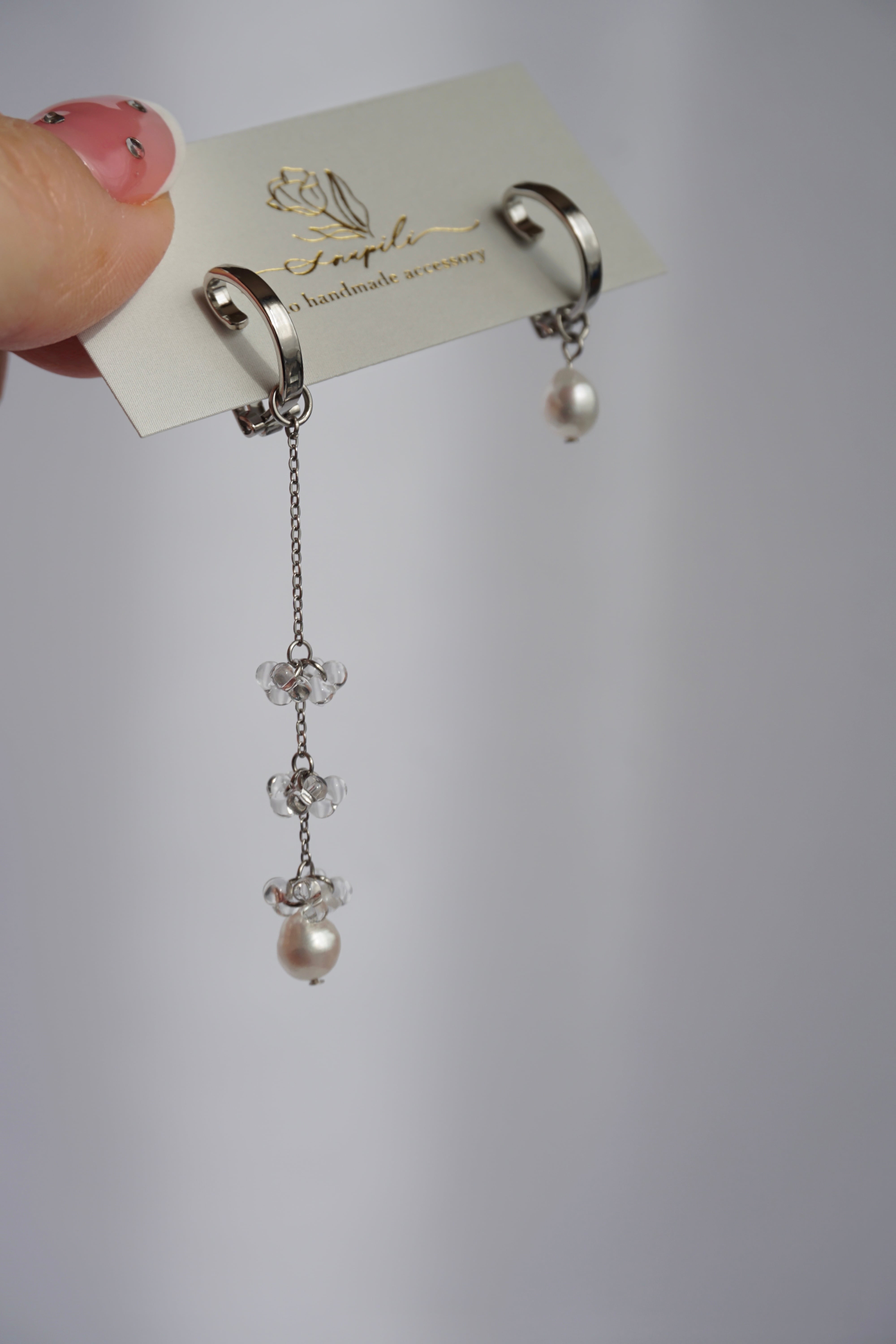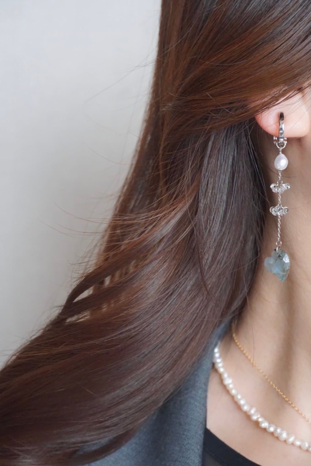 ハートだけ、パールだけのアシンメトリーでお洒落に。