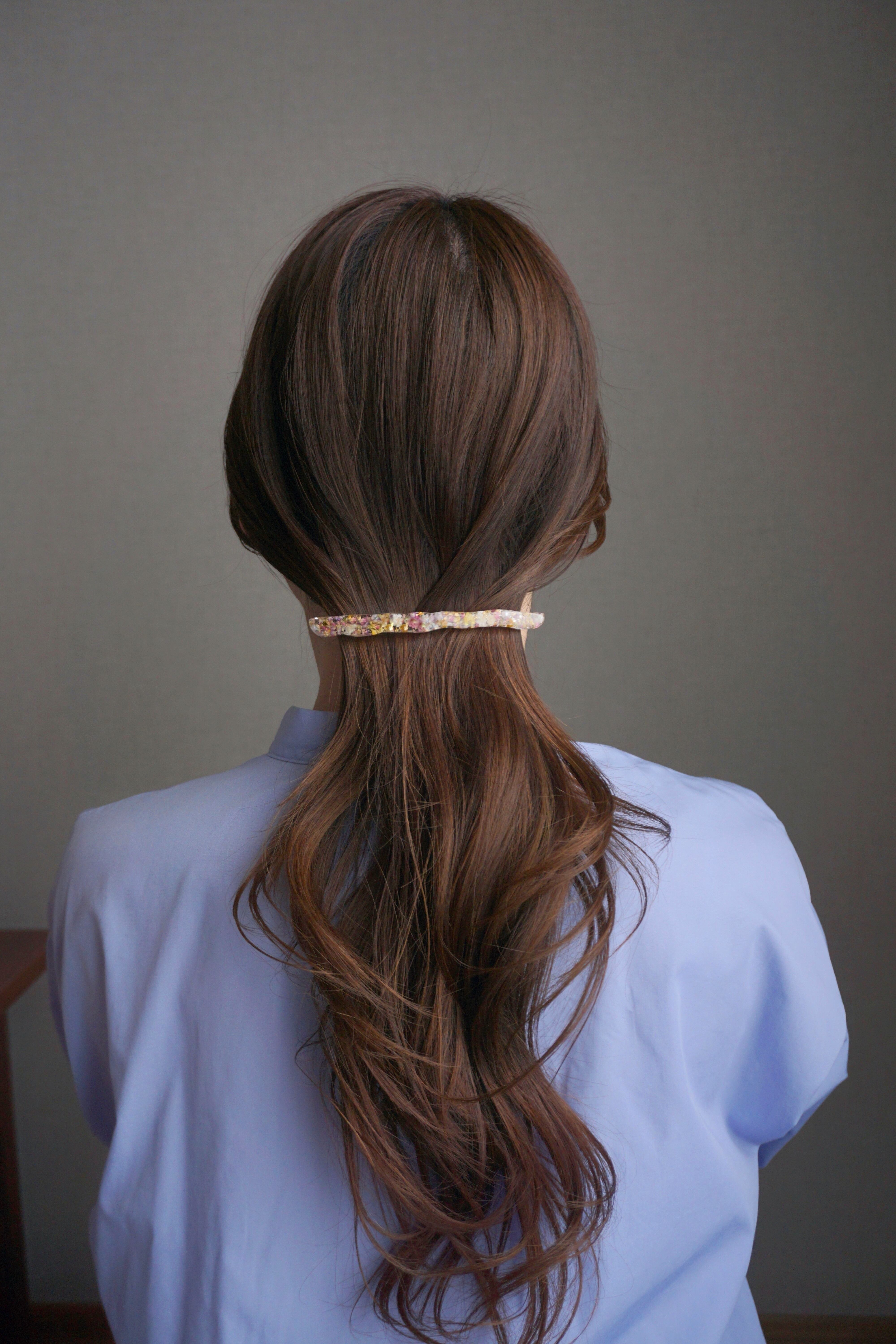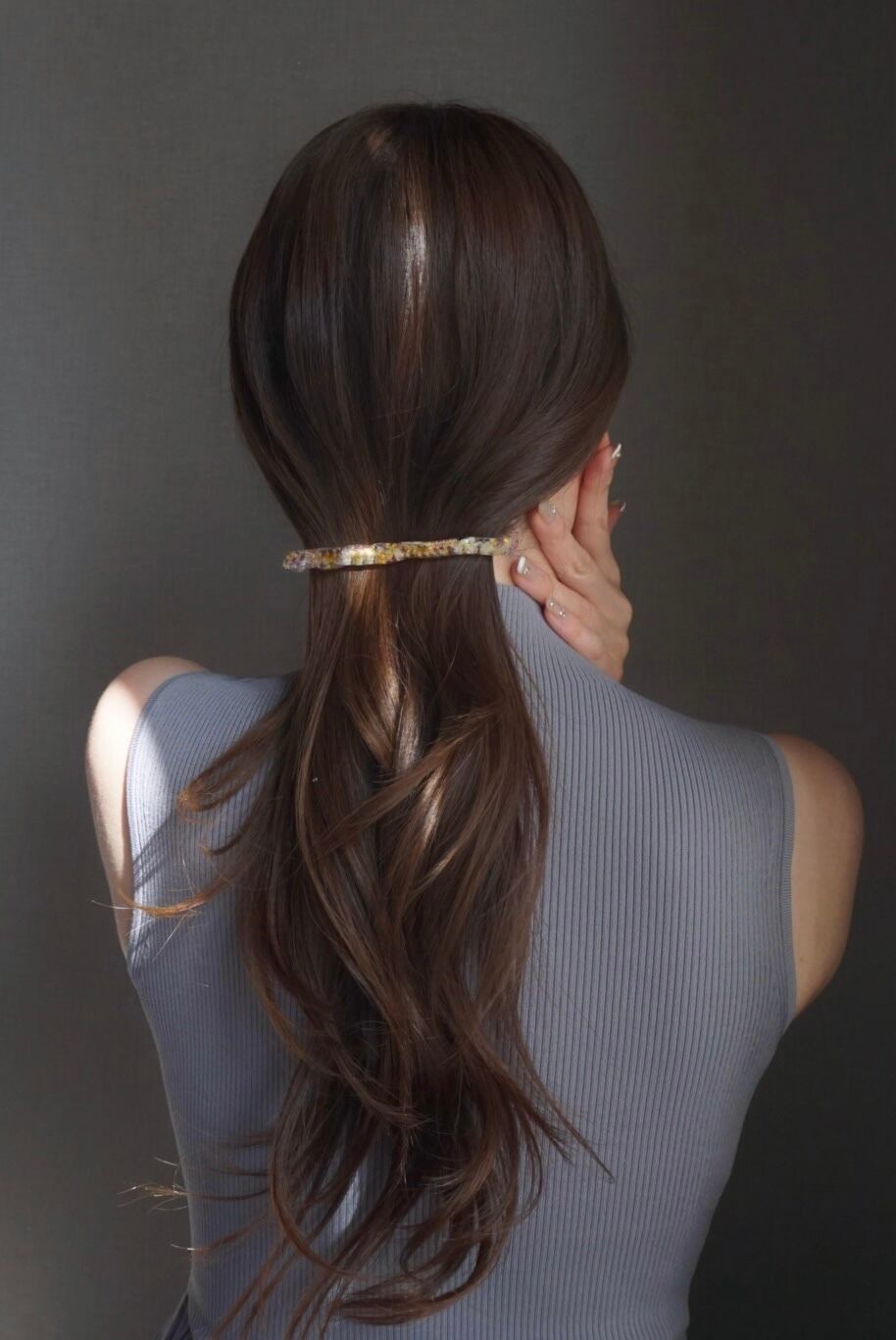 普段なかなかヘアアクセサリーをつけない方にもおすすめのロングバレッタ