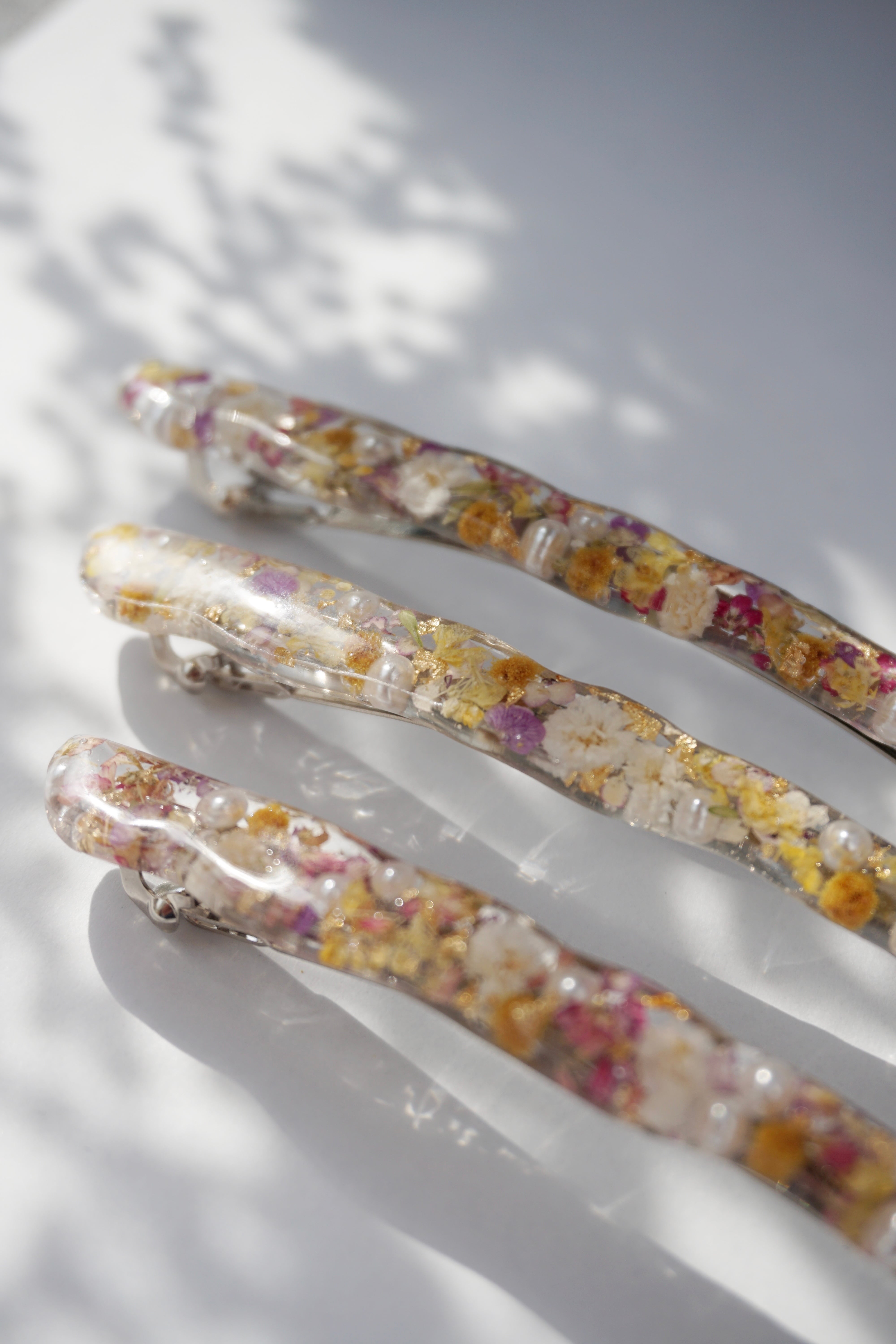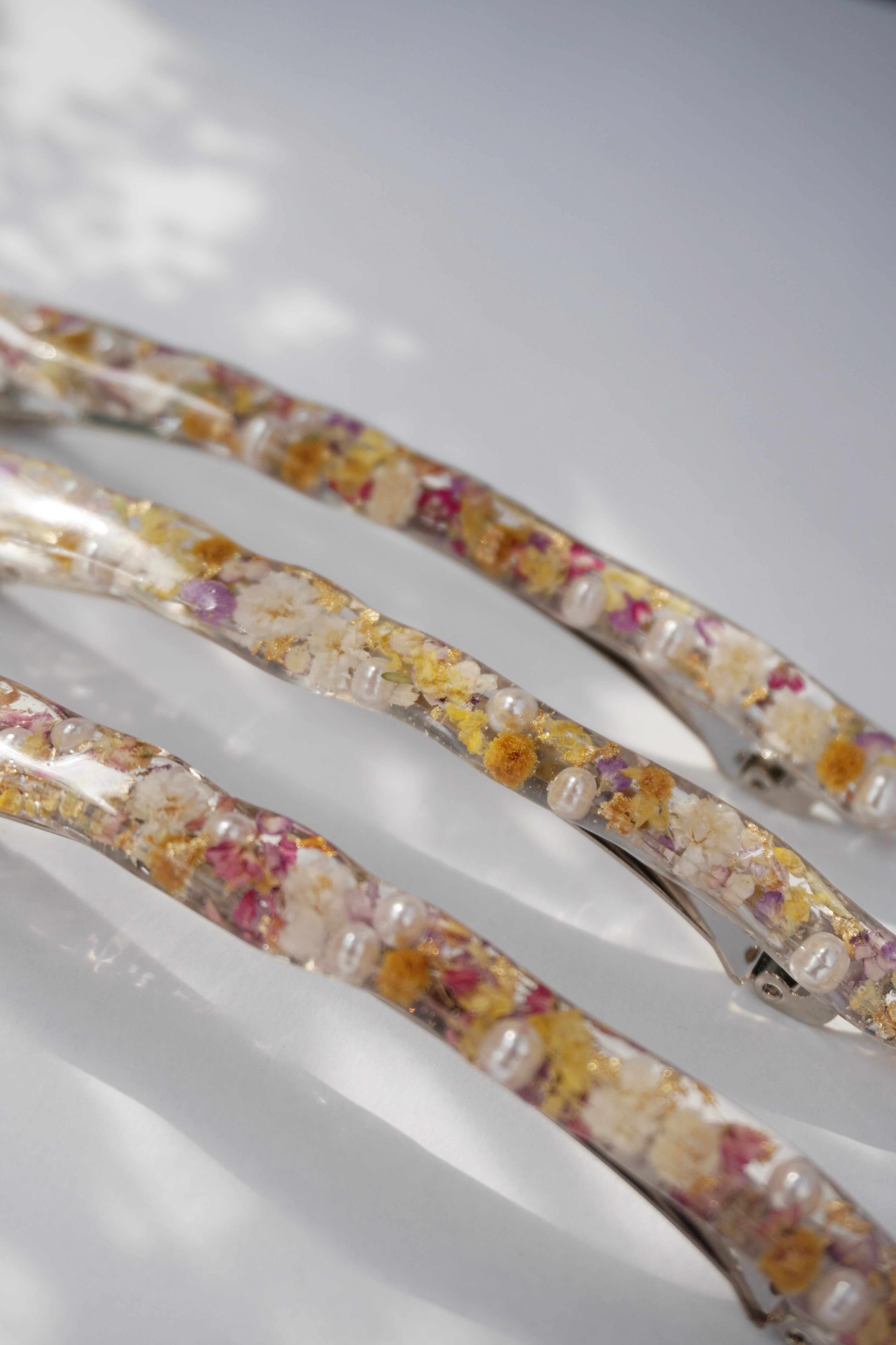 レジン、ドライフラワー、金箔、パールビーズ